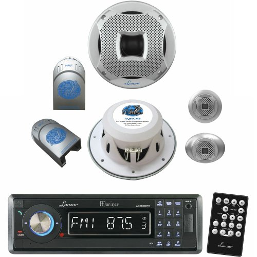 Marine audio package for your boat, pool, deck, patio, oudoors, etc. Includes a marine radio featuring bluetooth technology and a pair of marine speakers system. Product Dimensions: AQCD60BTB - 7''W x 4.72''D x 1.96''H; AQ65CMS - Mounting Depth: 2.60''Read more Lanzar Marine Receiver and Speaker System Package for your Boat, Pool, Deck, Patio, etc. - AQCD60BTB AM/FM-MPX In-Dash Marine Detachable Face Radio CD/SD/MMC/USB Player & Bluetooth Wireless Technology - AQ65CMS 500 Watts 6.5'' 2-Way Marine Component System (White Color) (Pair)